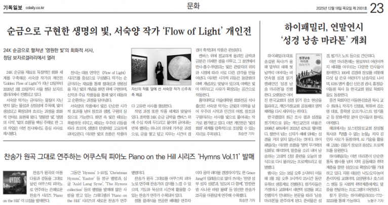 [기사] 어쿠스틱 피아노로 듣는 찬송가 ‘Piano on the Hill’ 11집 발매(기독일보)