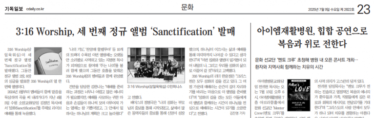뮤직타임 [기사] 3:16 Worship, 세 번째 정규 앨범 ‘Sanctification’ 발매(기독일보)