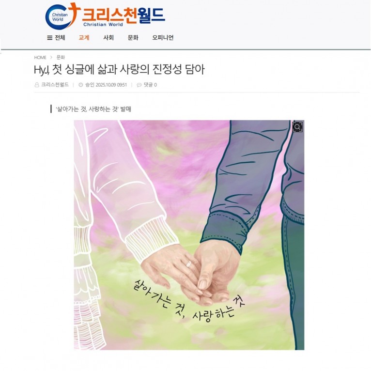 [기사] Hy.J, 첫 싱글에 삶과 사랑의 진정성 담아(크리스천월드)
